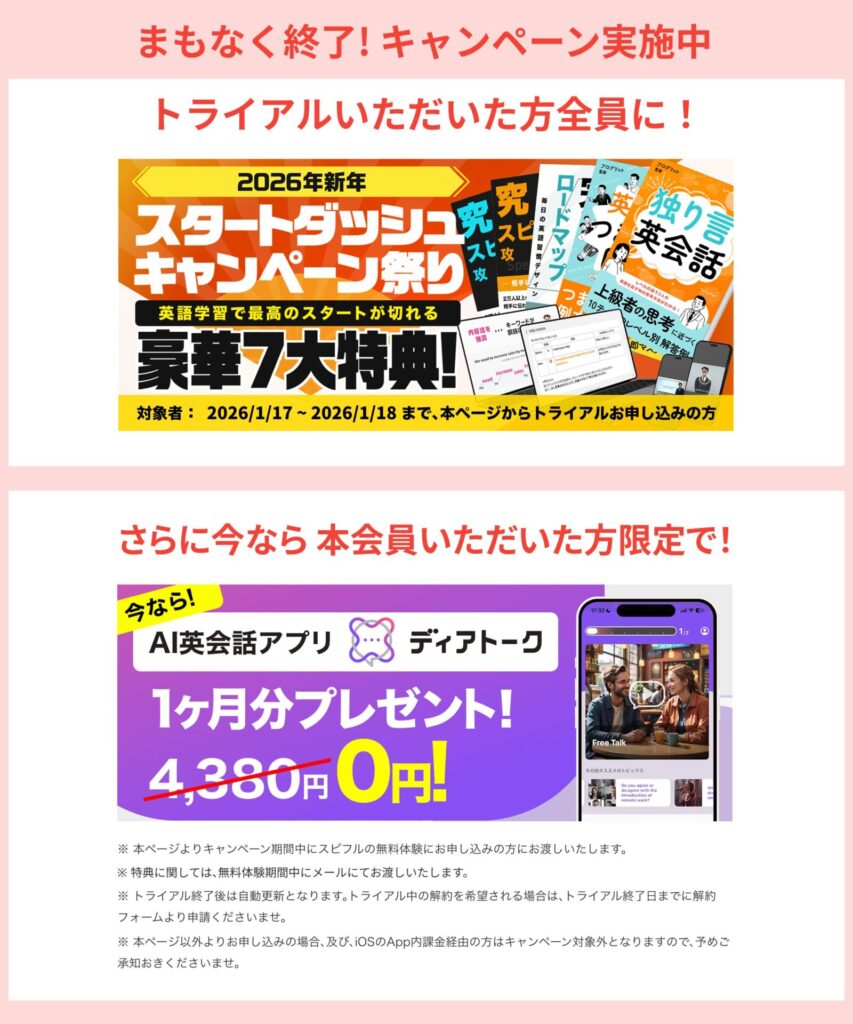 さらに、その後本登録をすると、ディアトークのAI英会話が1ヶ月無料で体験できる特典も!📚💻