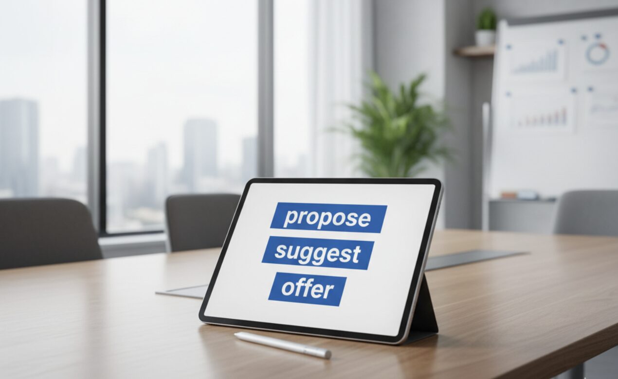 「提案する」とひとことで言っても、英語ではその場面や相手との関係性によって適切な表現を使い分けることが重要です。ここでは、ビジネスシーンでよく使われる5つの基本フレーズをご紹介します。