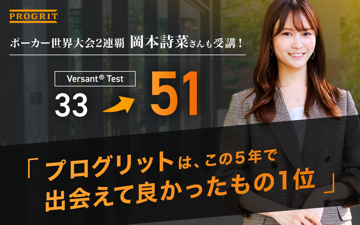 今回お話を伺ったのは、外資系証券会社から転身し、世界最高峰のポーカー大会「WSOP(World Series of Poker)」で2大会連続優勝という輝かしい実績を残されているプロポーカープレイヤーの岡本詩菜さん。世界を舞台に戦う彼女が、多忙な転戦生活の中でなぜプログリットを選び、いかにして短期間で劇的な英語力向上を果たしたのか。